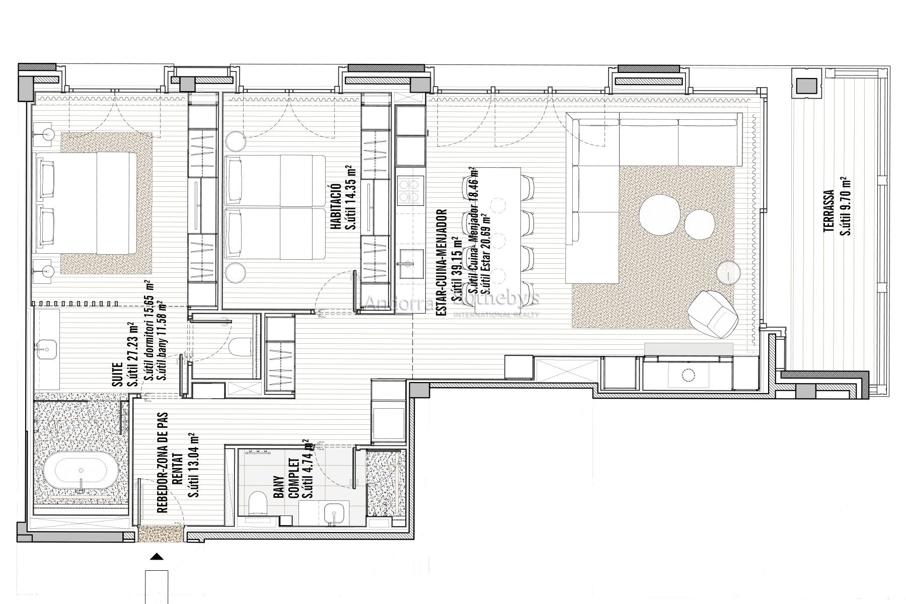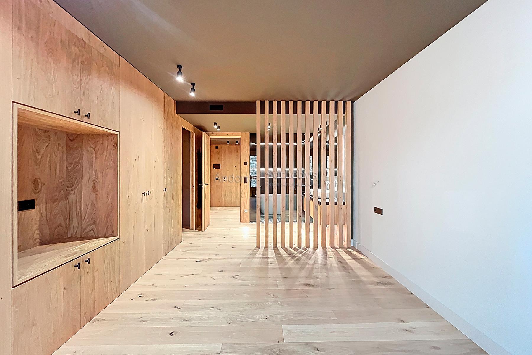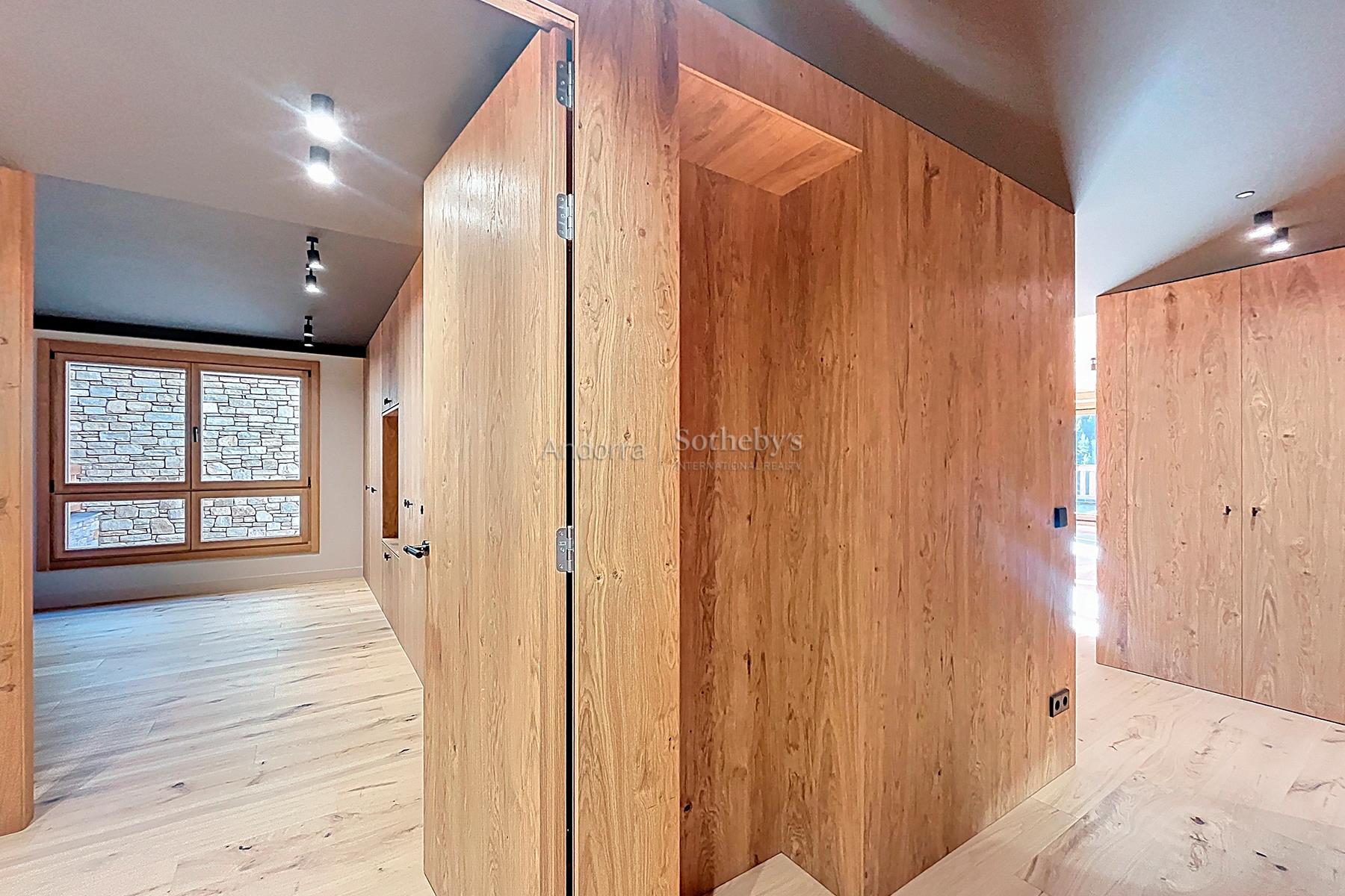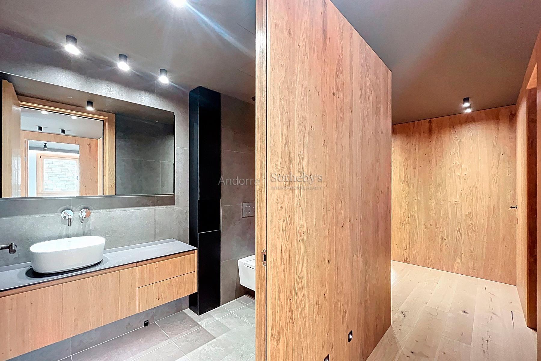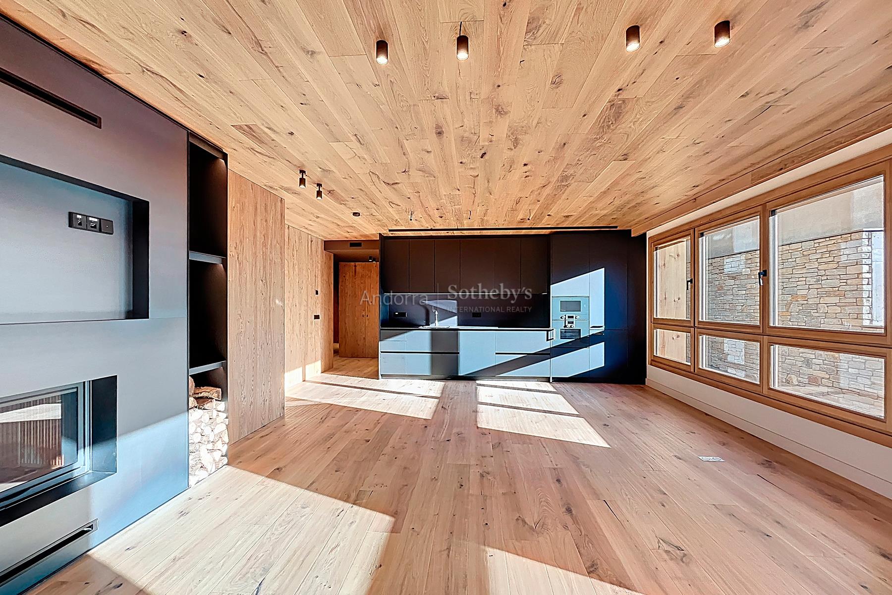 Bienvenidos a un auténtico refugio de lujo en el corazón de los imponentes Pirineos, a pocos pasos de las impresionantes pistas de esquí del encantador pueblo de Soldeu. Este exclusivo apartamento ofrece una experiencia inigualable, donde la naturaleza se combina con un diseño contemporáneo, creando el espacio perfecto para quienes buscan serenidad y sofisticación. Con una superficie de 120 m² meticulosamente diseñada, esta propiedad destaca por su estructura que respira naturaleza, utilizando madera de pino autóctono y piedra local que se integran armoniosamente en el paisaje circundante. La cocina de concepto abierto se conecta con un salón espacioso, fomentando la creación de momentos memorables en un ambiente acogedor y elegante. Este apartamento cuenta con dos habitaciones, incluyendo una suite principal y una habitación doble, así como dos baños completos (uno de ellos en la suite). Cada rincón ha sido cuidadosamente diseñado para garantizar la máxima comodidad y funcionalidad. Con la terraza de 9 m², los residentes pueden deleitarse con las espectaculares vistas a las pistas de esquí de Grandvalira y disfrutar de la belleza en todas las estaciones del año. Los amplios ventanales, estratégicamente orientados, permiten que la luz natural inunde el espacio, sumergiendo cada estancia en la calma y la majestuosidad de las cumbres nevadas. Además, este magnífico apartamento incluye una plaza de aparcamiento privada con capacidad para dos vehículos, brindando comodidad y fácil acceso en todo momento. Vive la magia de este espacio único, donde la naturaleza no solo se contempla sino que se siente y se celebra. Una lugar excepcional para quienes desean fusionarse con la esencia pura de la vida en el corazón de las montañas andorranas.Características