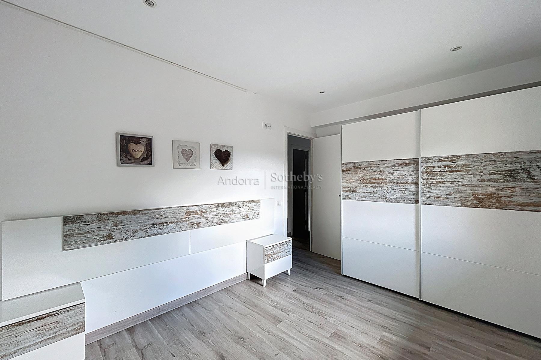 Esta propiedad se encuentra en una urbanización muy tranquila y rodeada de naturaleza, a pocos minutos en coche del centro de Andorra la Vella y Escaldes. La propiedad dispone de 115m2 distribuidos en 2 plantas. En la planta inferior se encuentra la zona de noche, distribuida en 3 dormitorios dobles (uno de ellos en suite) y un segundo baño completo. En la planta superior está la zona de día, compuesta por una cocina abierta y un amplio salón-comedor con salida a una terraza de 9m2 con vistas espectaculares a todo el valle, y mucha luz natural gracias a su orientación. Esta propiedad dispone de trastero en box.Características