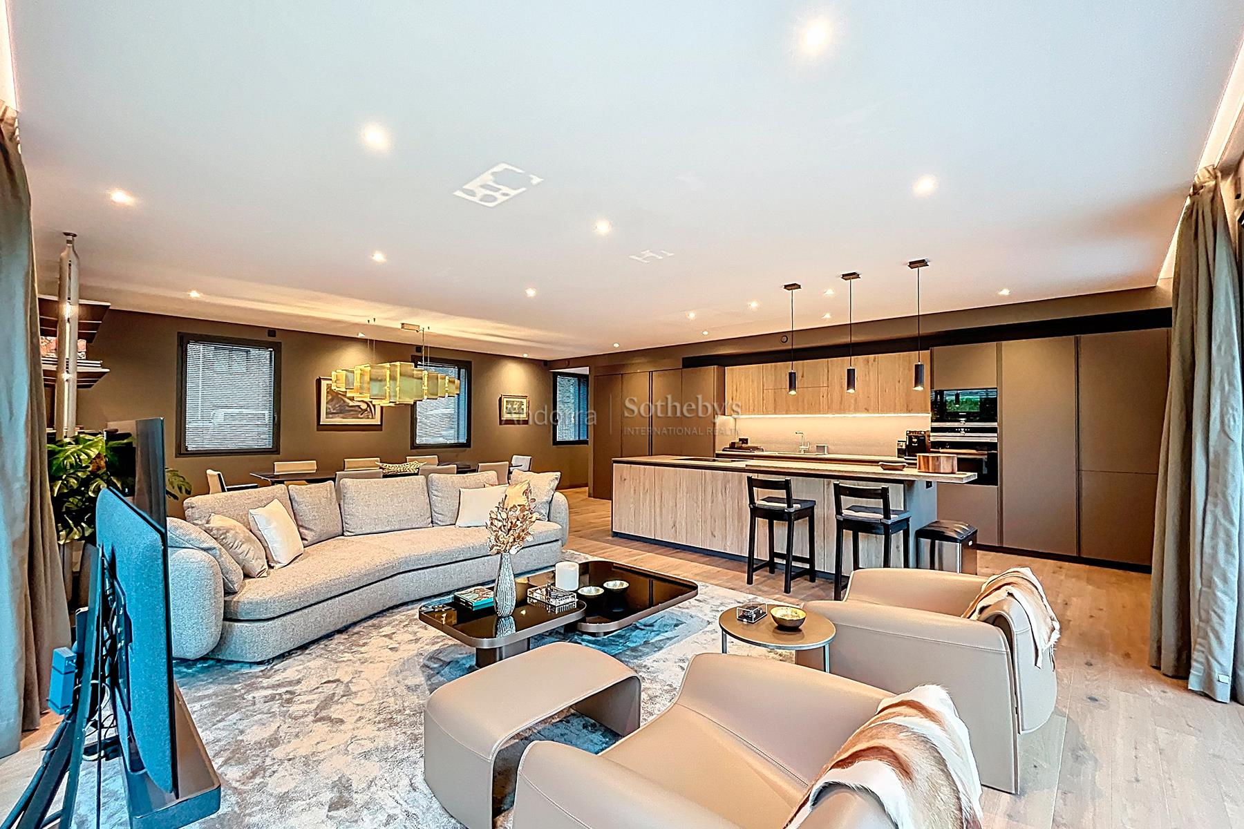 Situada a tan solo cinco minutos a pie del centro de Ordino y cerca de las escuelas, esta elegante y espaciosa planta baja de 328 m² ofrece un estilo de vida exclusivo en un entorno de ensueño. Consta de 162,92 m² de superficie interior de diseño moderno y funcional, y 165,83 m² de espacio exterior que incluye una terraza de 24,35 m² y un jardín de 134,01 m². La zona de día, amplia y luminosa, combina sala, comedor y cocina en un solo espacio con salida directa al exterior, facilitando un estilo de vida abierto y conectado con la naturaleza. Dispone de tres habitaciones, incluyendo una suite con vestidor, así como dos baños completos de diseño contemporáneo y un aseo de cortesía con lavadero integrado. La garaje de 49,03 m² permite alojar tres o cuatro vehículos y ofrece espacio de almacenamiento. Los materiales de primera calidad, la construcción cuidada y unas vistas espectaculares a las montañas de la Vall d’Ordino confieren a esta propiedad un carácter único y exclusivo. El jardín, equipado con un jacuzzi relajante, es el espacio perfecto para disfrutar de momentos de tranquilidad, relax y convivencia en un entorno privado de gran belleza.Características