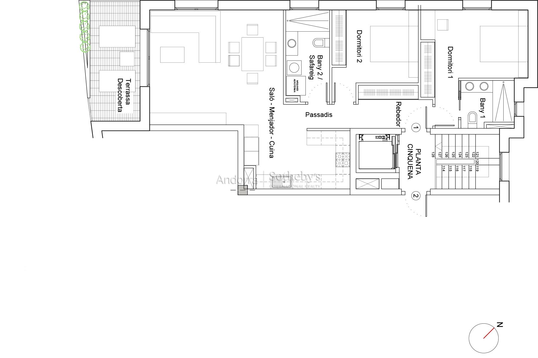Ce magnifique logement est situé dans un nouveau complexe résidentiel en construction à Escaldes-Engordany, Residencial Marió, à quelques minutes du centre commercial et financier du pays. D'une superficie de 112,90 m2, cette propriété moderne dispose d'une terrasse de 11,70 m2, offrant un environnement lumineux et ensoleillé grâce à son orientation optimale. Le logement se compose de 2 chambres ; une suite et une chambre double. Il dispose également d'une salle de bains complète indépendante, en plus de celle de la suite, avec un espace pour la buanderie. Profitez d'un grand salon-salle à manger avec cuisine intégrée et accès à la terrasse, créant un espace parfait pour le divertissement. Parmi les caractéristiques remarquables, on trouve des finitions haut de gamme, le chauffage par aérothermie et pompe à chaleur, des volets en aluminium motorisés, un éclairage LED, un chauffage au sol, entre autres. De plus, des places de parking et des espaces de rangement sont disponibles selon vos besoins, mais ne sont pas inclus dans le prix du logement. La livraison de cette propriété est prévue pour avril 2025, vous offrant l'opportunité de sécuriser votre domicile dans ce complexe résidentiel exclusif.Caractéristiques