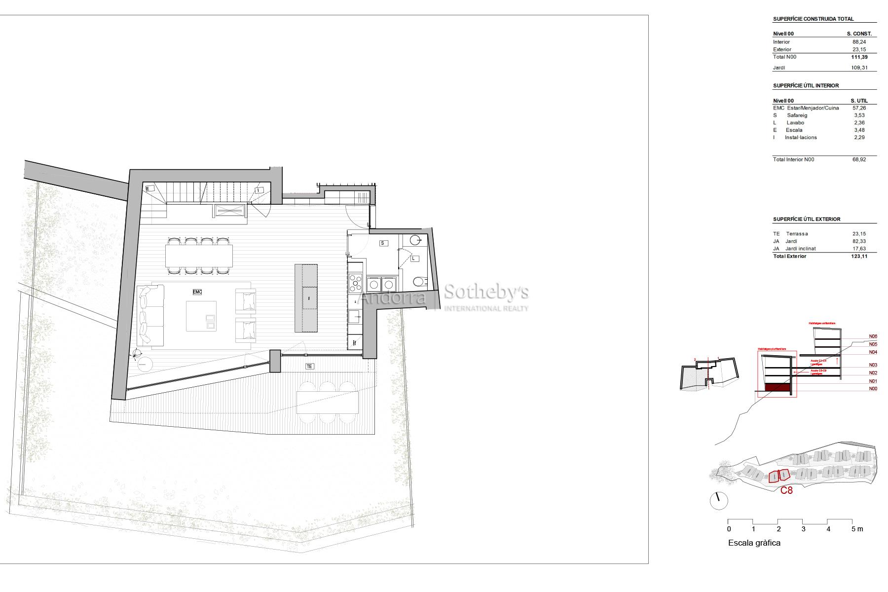 VIVIENDA 8.2 Bienvenido a su nuevo hogar situado en un entorno natural privilegiado en Els Vilars, Escaldes, donde la elegancia se fusiona con la belleza del paisaje andorrano. Esta espectacular propiedad, ubicada a pocos minutos del vibrante centro de Andorra la Vella, ofrece un acceso inmediato a una amplia gama de servicios, comercios y áreas de ocio. Con un diseño pensado para la sostenibilidad, este dúplex destaca por sus generosas aperturas, que permiten la entrada de luz natural, creando así un ambiente de armonía y serenidad. Las impresionantes vistas a las montañas y a Escaldes, junto con una orientación sur que asegura una excelente iluminación a lo largo del día, hacen de este hogar un verdadero oasis de tranquilidad. Esta propiedad ocupa la planta baja y la primera planta. Incluye tres cómodos dormitorios, uno de ellos en suite, dos baños completos y un servicio de invitados, un lavadero y un amplio jardín con acceso directo desde la sala de estar y el comedor. La planta baja presenta una sala de estar con chimenea de grandes dimensiones, separada de la cocina por una elegante isla que crea dos zonas distintas en un solo espacio. En la primera planta, los tres dormitorios ofrecen privacidad y confort. Con un diseño orientado al ahorro energético, esta propiedad no solo proporciona comodidad, sino que también cuenta con jardines y zonas verdes que fomentan un estilo de vida íntimo y placentero. Descubra la verdadera esencia de la vida andorrana en este dúplex único, donde cada detalle ha sido pensado para garantizar el máximo confort y una vida plena de armonía y belleza.Características