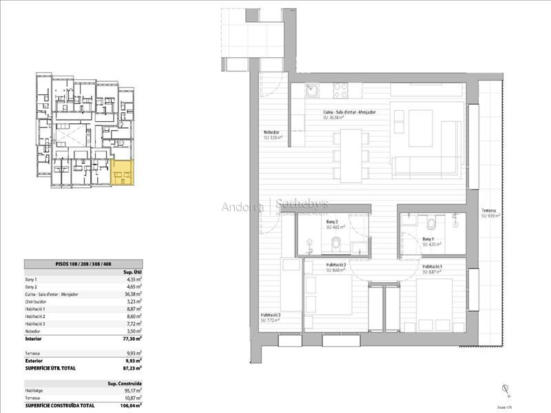 Descubre esta magnífica obra nueva ubicada en El Tarter. Con una superficie de 106,03m2, esta propiedad ofrece un espacio moderno y espacioso para disfrutarlo al máximo. La cocina, integrada en el salón comedor, crea un ambiente acogedor y funcional. Desde aquí podrás acceder a una encantadora terraza de 10,86m2 con vistas. Con dos amplias habitaciones dobles, incluyendo una suite impresionante, y dos baños completos, este hogar es perfecto para aquellos que buscan comodidad y estilo. El edificio cuenta con un box privado para dos coches, lo que brinda una comodidad adicional y permite tener tus vehículos protegidos del frío y la nieve. Esta propiedad está equipada con características de alta calidad, como iluminación LED de bajo consumo, suelo radiante y una elegante chimenea eléctrica. Además, cuenta con domótica que te permite controlar y gestionar fácilmente los sistemas del hogar desde su teléfono inteligente. Los electrodomésticos de primera calidad le ofrecen una experiencia culinaria excepcional, mientras que los suelos radiantes, y de gres porcelánico añaden un toque cálido, de sofisticación y durabilidad. La comunidad dispone de un spa y una zona de relax comunitario, donde podrás disfrutar de piscinas y jacuzzis, creando un ambiente de bienestar y relajación. Además un patio central con zona verde completa este entorno, proporcionando un espacio tranquilo y natural. No pierdas la oportunidad de vivir en esta maravillosa propiedad en El Tarter. Características