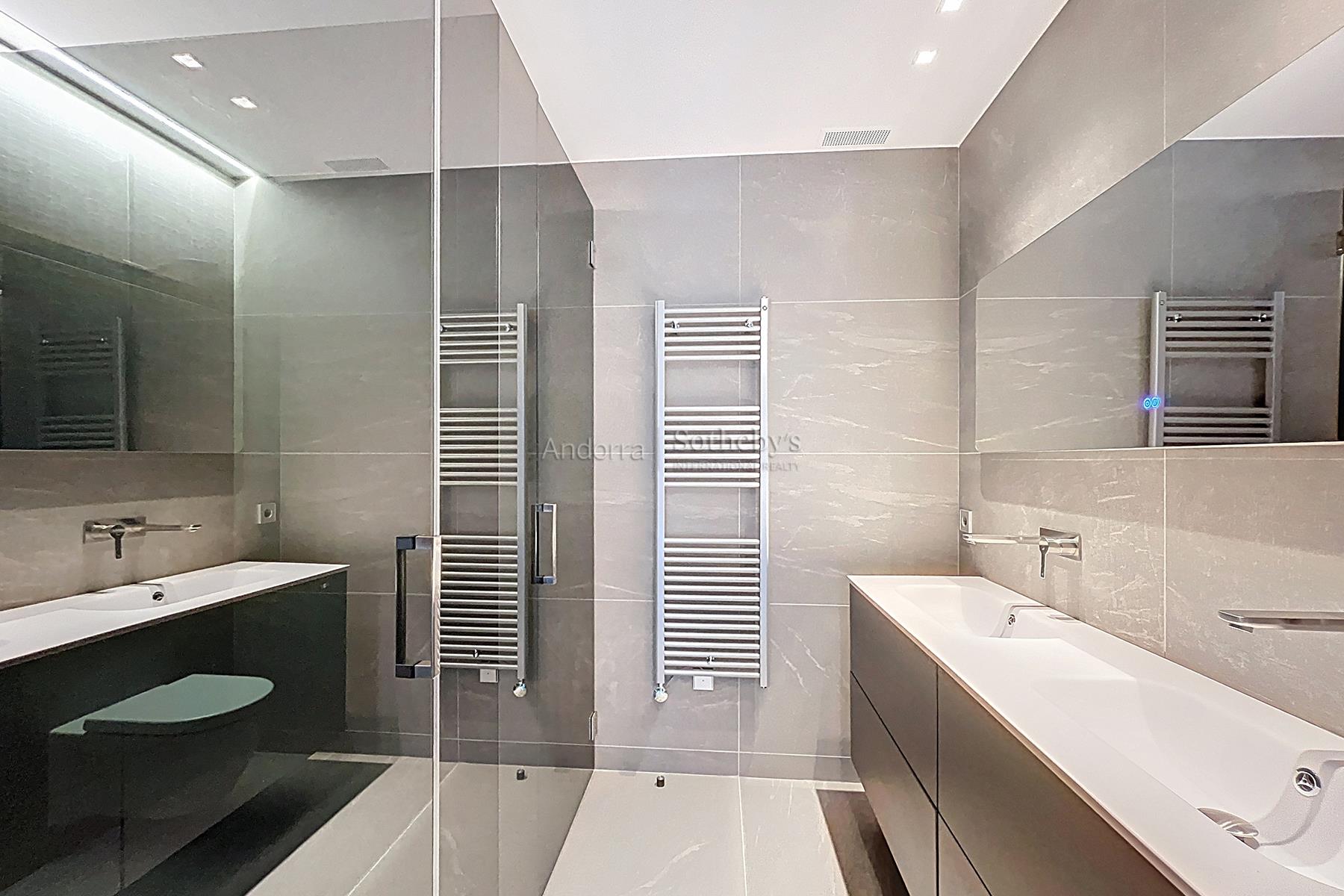 Le presentamos esta magnífica propiedad en alquiler, de 181 m², con aproximadamente 25 m² de terraza, ubicada en una de las zonas más privilegiadas del centro de Andorra la Vella. La zona de estar cuenta con un espacioso salón-comedor con cocina abierta de diseño moderno, que favorece la luminosidad y la amplitud del espacio. Desde el salón se accede a la agradable terraza con vistas y bien orientada al sur, ideal para disfrutar de momentos de relax al aire libre. El piso dispone de tres amplias habitaciones, una suite principal y dos suites, con sus baños completos y armarios, ofreciendo el máximo confort y funcionalidad para el día a día. Además, cuenta con un servicio de cortesía y un práctico lavadero. La propiedad incluye dos plazas de aparcamiento en el mismo edificio y un trastero de unos 7 m², un valor añadido especialmente en una zona tan céntrica. Situado a solo 2 minutos a pie de todos los servicios esenciales—comercios, restaurantes, centros médicos y transporte—, este domicilio es ideal como residencia habitual.Características