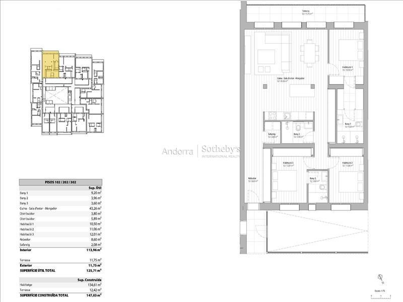 Descubre esta magnífica obra nueva ubicada en El Tarter. Con una superficie de 147,03m2, esta propiedad ofrece un espacio moderno y espacioso para disfrutarlo al máximo. La cocina, integrada en el salón comedor, crea un ambiente acogedor y funcional. Desde aquí podrás acceder a una encantadora terraza de 12,42m2 con vistas. Con tres amplias habitaciones dobles, incluyendo una suite impresionante, y dos baños completos, este hogar es perfecto para aquellos que buscan comodidad y estilo. El edificio cuenta con un box privado para dos coches, lo que brinda una comodidad adicional y permite tener tus vehículos protegidos del frío y la nieve. Esta propiedad está equipada con características de alta calidad, como iluminación LED de bajo consumo, suelo radiante y una elegante chimenea eléctrica. Además, cuenta con domótica que te permite controlar y gestionar fácilmente los sistemas del hogar desde su teléfono inteligente. Los electrodomésticos de primera calidad le ofrecen una experiencia culinaria excepcional, mientras que los suelos radiantes, y de gres porcelánico añaden un toque cálido, de sofisticación y durabilidad. La comunidad dispone de un spa y una zona de relax comunitario, donde podrás disfrutar de piscinas y jacuzzis, creando un ambiente de bienestar y relajación. Además un patio central con zona verde completa este entorno, proporcionando un espacio tranquilo y natural. No pierdas la oportunidad de vivir en esta maravillosa propiedad en El Tarter.