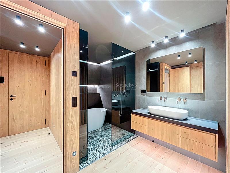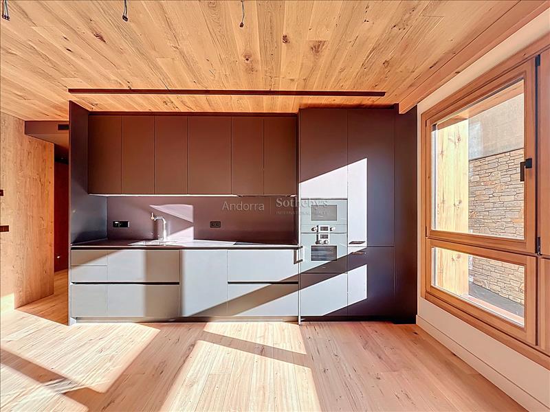 Bienvenidos a un auténtico refugio de lujo en el corazón de los imponentes Pirineos, a pocos pasos de las impresionantes pistas de esquí del encantador pueblo de Soldeu. Este exclusivo apartamento ofrece una experiencia inigualable, donde la naturaleza se combina con un diseño contemporáneo, creando el espacio perfecto para quienes buscan serenidad y sofisticación. Con una superficie de 120 m² meticulosamente diseñada, esta propiedad destaca por su estructura que respira naturaleza, utilizando madera de pino autóctono y piedra local que se integran armoniosamente en el paisaje circundante. La cocina de concepto abierto se conecta con un salón espacioso, fomentando la creación de momentos memorables en un ambiente acogedor y elegante. Este apartamento cuenta con dos habitaciones, incluyendo una suite principal y una habitación doble, así como dos baños completos (uno de ellos en la suite). Cada rincón ha sido cuidadosamente diseñado para garantizar la máxima comodidad y funcionalidad. Con la terraza de 9 m², los residentes pueden deleitarse con las espectaculares vistas a las pistas de esquí de Grandvalira y disfrutar de la belleza en todas las estaciones del año. Los amplios ventanales, estratégicamente orientados, permiten que la luz natural inunde el espacio, sumergiendo cada estancia en la calma y la majestuosidad de las cumbres nevadas. Además, este magnífico apartamento incluye una plaza de aparcamiento privada con capacidad para dos vehículos, brindando comodidad y fácil acceso en todo momento. Vive la magia de este espacio único, donde la naturaleza no solo se contempla sino que se siente y se celebra. Una lugar excepcional para quienes desean fusionarse con la esencia pura de la vida en el corazón de las montañas andorranas.Características
