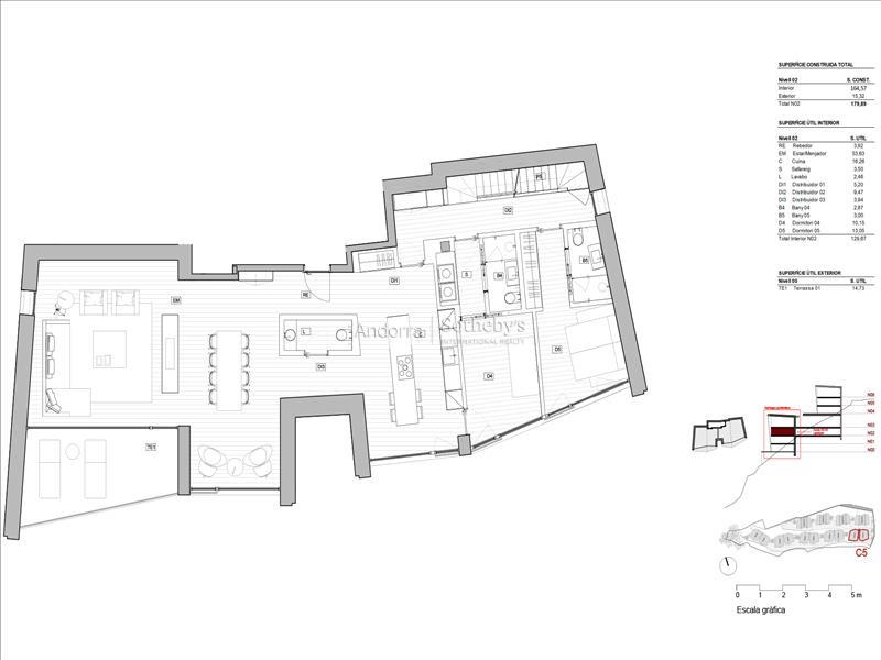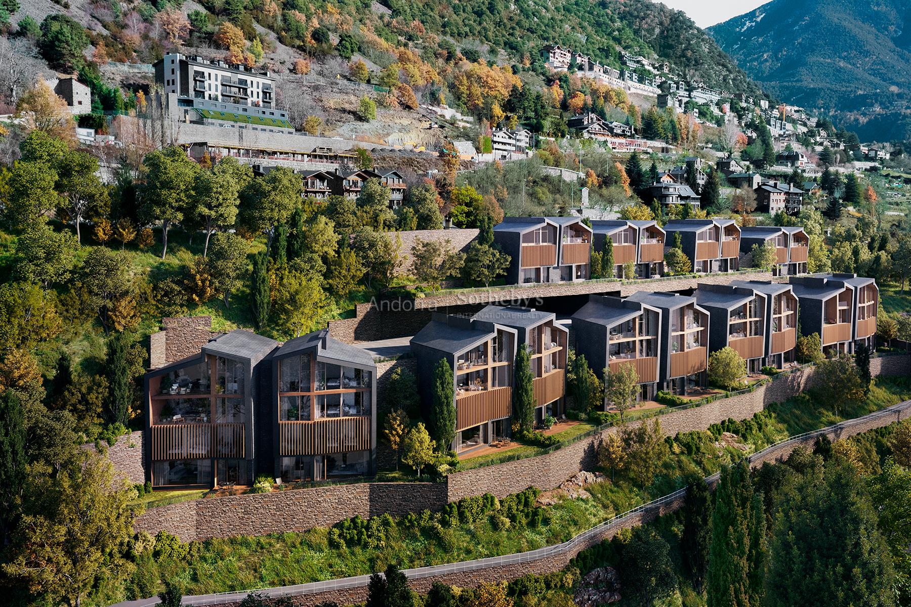 VIVIENDA 5.3 Bienvenido a su nuevo hogar, donde la elegancia se une a la naturaleza en un entorno privilegiado. Situado en Els Vilars, Escaldes, este espectacular dúplex es la opción perfecta para aquellos que buscan un exquisito equilibrio entre tranquilidad y comodidad, a tan solo unos minutos del vibrante centro de la capital andorrana. Con una arquitectura sostenible, esta exclusividad destaca por amplias aberturas que permiten que la luz natural inunde cada rincón, creando una atmósfera de serenidad. Las espectaculares vistas sobre Escaldes y las majestuosas montañas que lo rodean aportan un valor añadido, mientras que su orientación sur garantiza una iluminación excelente durante todo el día, desde el amanecer hasta el atardecer. Este inmueble plurifamiliar ocupa la segunda planta y el ático del edificio más emblemático de la promoción. Cuenta con 5 dormitorios en suite, un baño de invitados y dos terrazas que invitan a disfrutar del exterior. La planta baja del dúplex ofrece una sala de estar de generosas dimensiones con doble altura, equipada con una chimenea singular que separa el área del comedor, creando ambientes distintivos en un solo espacio. La cocina, de gran formato con isla central, se complementa con un dormitorio de servicio con lavadero y un dormitorio en suite. En el ático, encontramos tres dormitorios en suite, entre los cuales destaca el dormitorio principal, que impresiona por sus dimensiones, acceso directo a la terraza y las vistas más espectaculares de Escaldes. Con orientaciones sur, este y oeste, esta propiedad no solo destaca por su belleza exterior, sino también por un diseño pensado para el ahorro energético. El conjunto se complementa con jardines y zonas verdes, ofreciendo un espacio de vida íntimo y placentero. Descubra la verdadera esencia de la vida andorrana en este dúplex único, donde cada detalle ha sido cuidadosamente seleccionado para ofrecerle el máximo confort y una vida llena de armonía y belleza. Bienvenidos a casa.Características