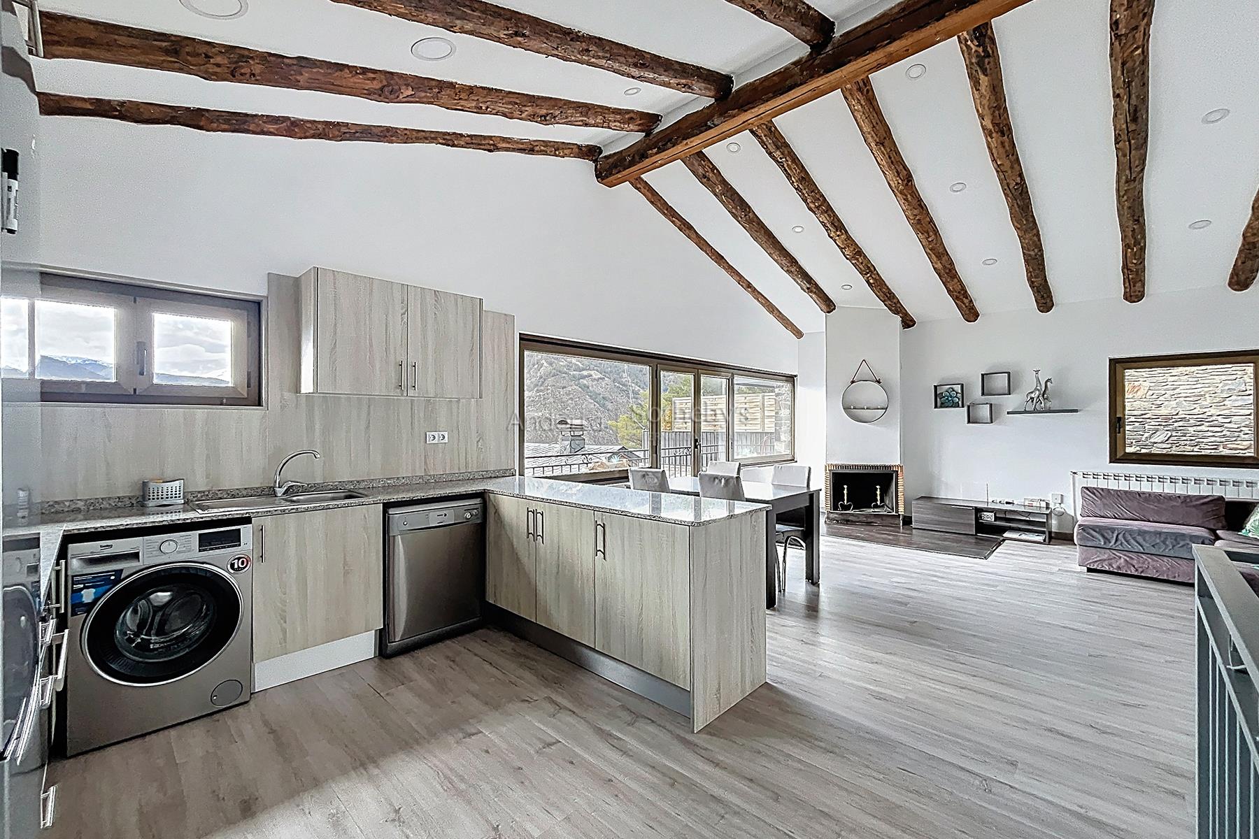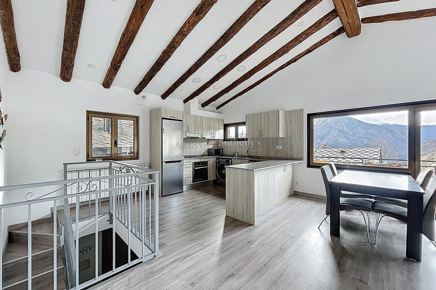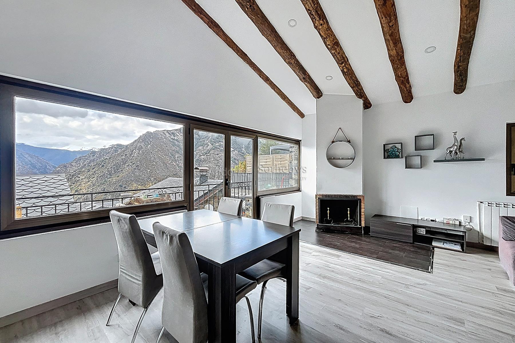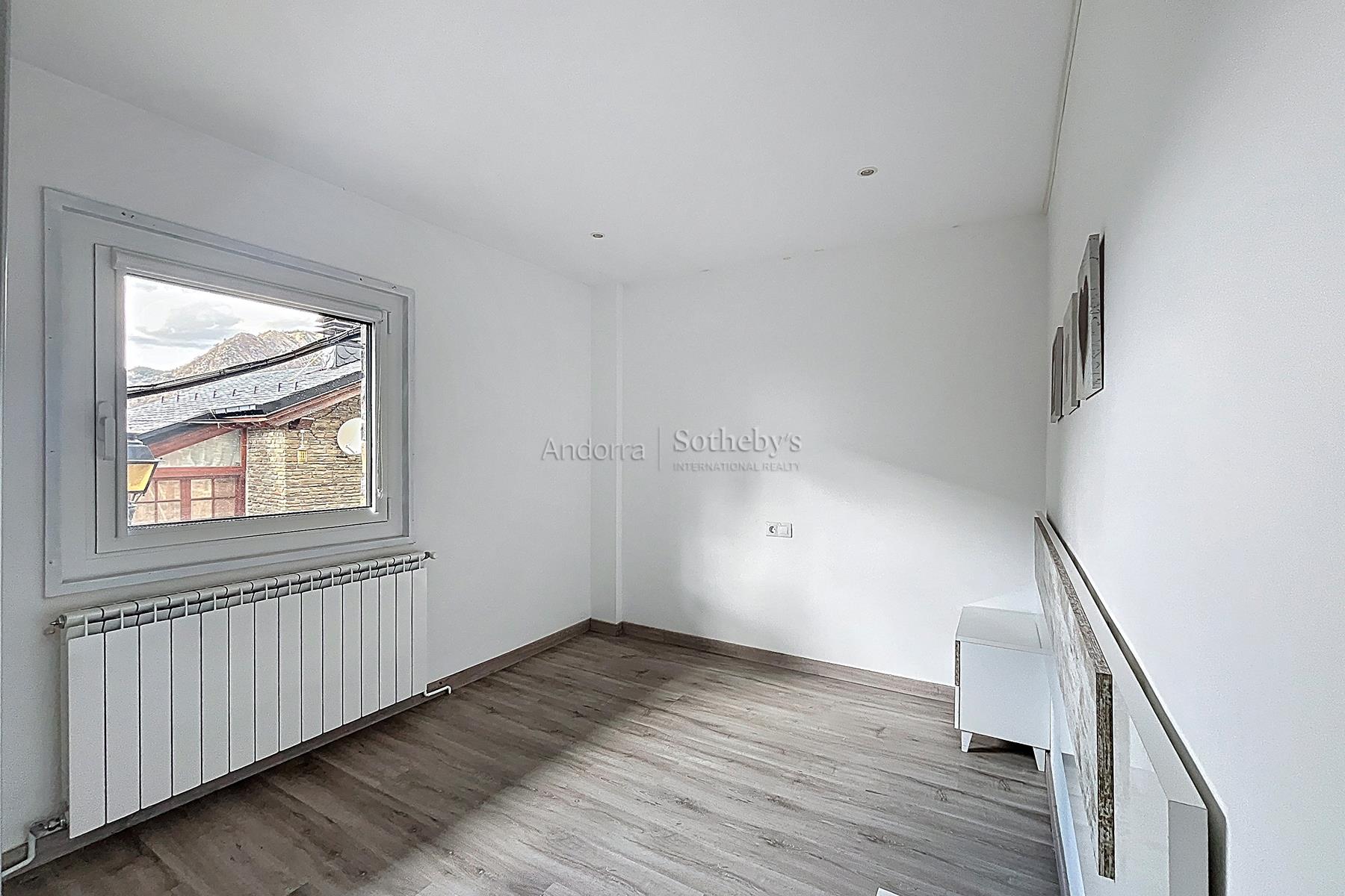 Esta propiedad se encuentra en una urbanización muy tranquila y rodeada de naturaleza, a pocos minutos en coche del centro de Andorra la Vella y Escaldes. La propiedad dispone de 115m2 distribuidos en 2 plantas. En la planta inferior se encuentra la zona de noche, distribuida en 3 dormitorios dobles (uno de ellos en suite) y un segundo baño completo. En la planta superior está la zona de día, compuesta por una cocina abierta y un amplio salón-comedor con salida a una terraza de 9m2 con vistas espectaculares a todo el valle, y mucha luz natural gracias a su orientación. Esta propiedad dispone de trastero en box.