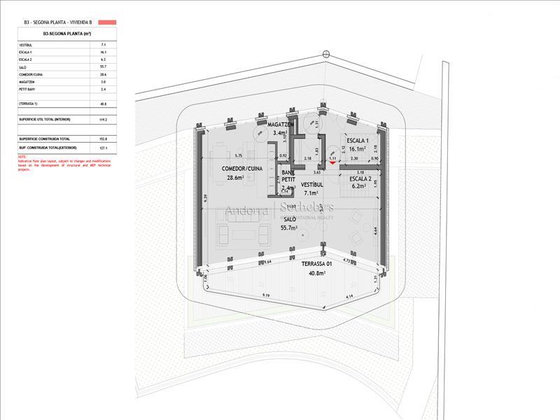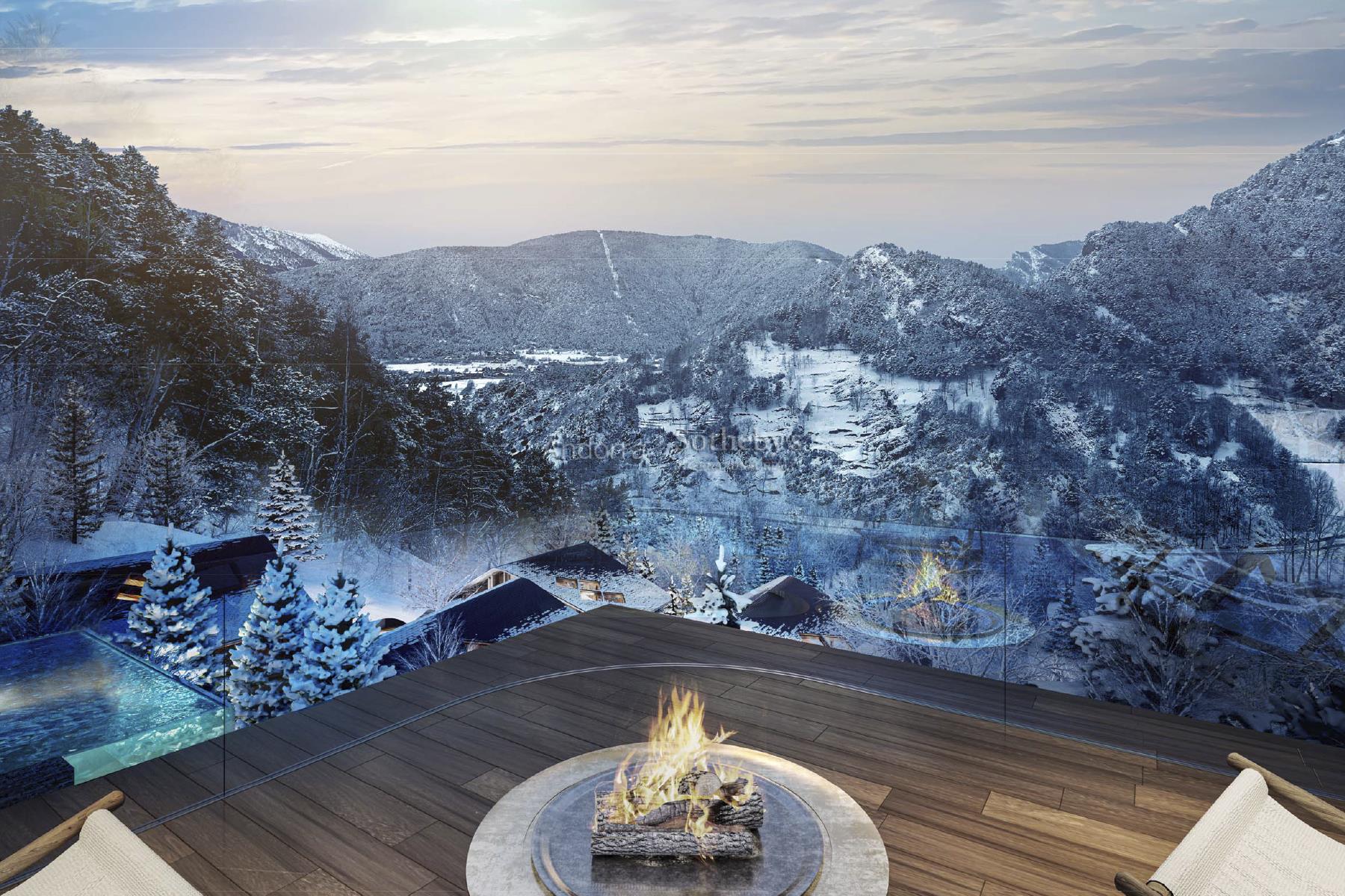 Dúplex exclusivo con altillo en venta en el encantador pueblo de Ordino, primer destino del Principado de Andorra designado como Reserva de la Biosfera. Esta sensacional propiedad forma parte de una promoción de nueva construcción que destaca por su privilegiada ubicación así como por su diseño lujoso, ideado por el prestigioso estudio de arquitectura Rafael De la-Hoz Arquitectes. Se trata de un inmueble de nueva construcción de aproximadamente 362 m² construidos, que incluye dos terrazas orientadas de manera óptima para aportar la máxima exposición posible a la luz natural, mientras se disfrutan de las magníficas vistas de Ordino y sus valles. En la primera planta se encuentra la zona de descanso, con tres habitaciones en suite con baño completo, y la suite principal de la propiedad, con vestidor y baño completo. Todas las habitaciones tienen salida a la terraza. La segunda planta está distribuida en una gran cocina con isla central, equipada con las últimas tecnologías y abierta a un acogedor comedor, con chimenea y acceso a la terraza. En esta zona también hay un salón y una biblioteca, ambos espacios con salida a la terraza, un aseo y una zona de lavadora. En la última planta, bajo el tejado, se ubica un práctico despacho. La propiedad dispone de un garaje para 3 coches. Los acabados son elegantes y de la más alta calidad, y el diseño de la propiedad combina elementos modernos, como los grandes ventanales, con la arquitectura clásica andorrana en piedra y madera para integrarse de la mejor manera en el entorno y no perder la esencia del país.Características