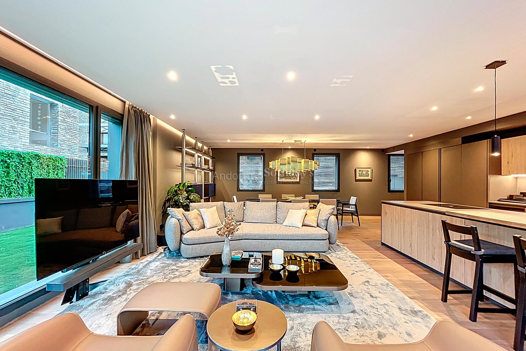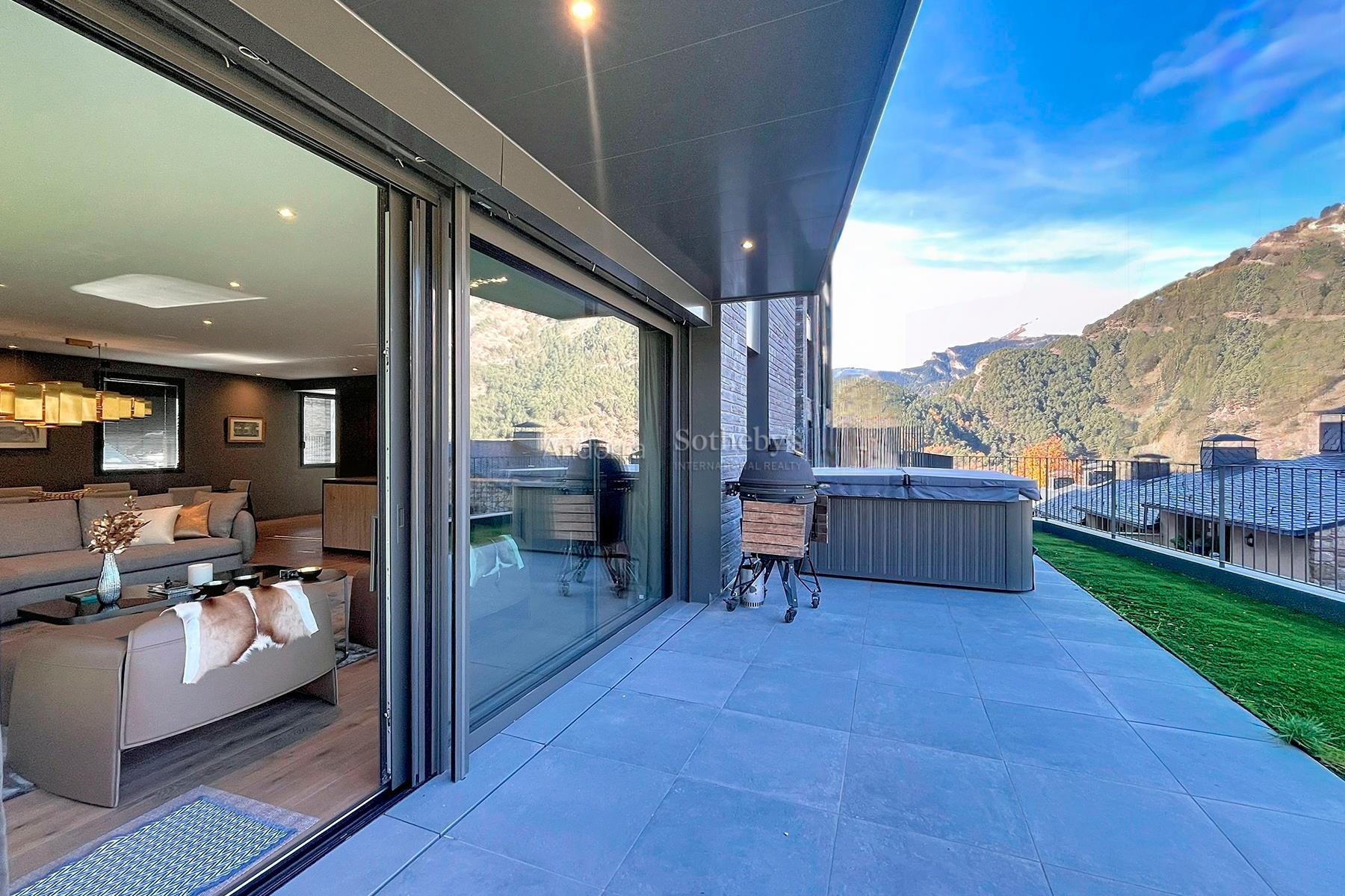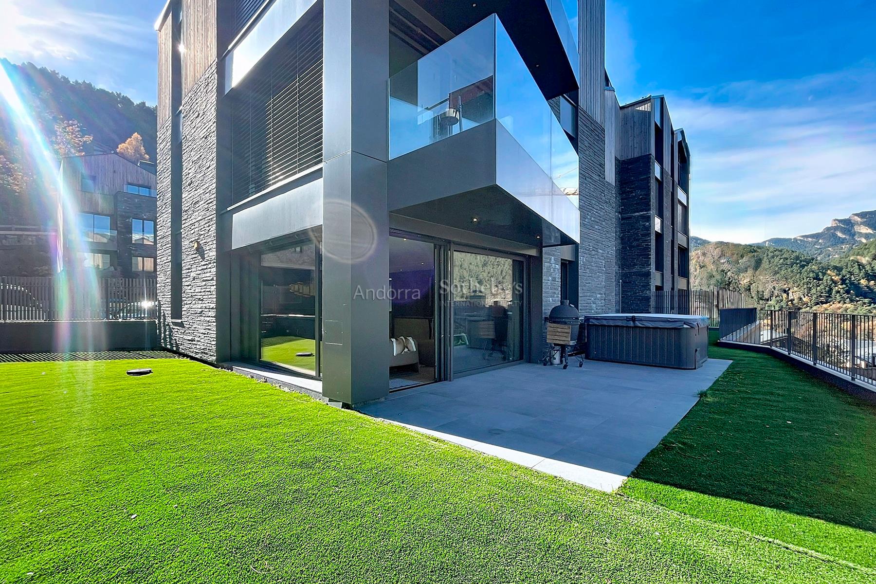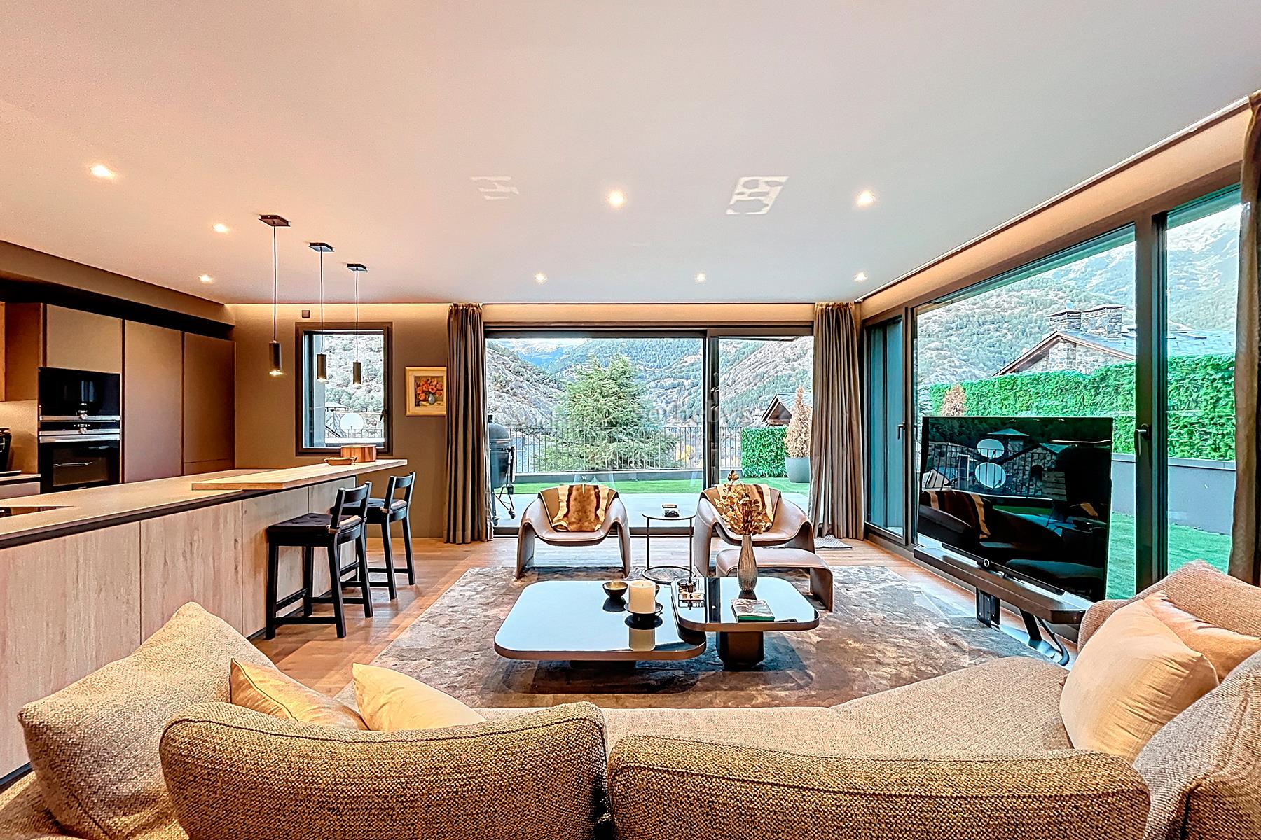 Situada a tan solo cinco minutos a pie del centro de Ordino y cerca de las escuelas, esta elegante y espaciosa planta baja de 328 m² ofrece un estilo de vida exclusivo en un entorno de ensueño. Consta de 162,92 m² de superficie interior de diseño moderno y funcional, y 165,83 m² de espacio exterior que incluye una terraza de 24,35 m² y un jardín de 134,01 m². La zona de día, amplia y luminosa, combina sala, comedor y cocina en un solo espacio con salida directa al exterior, facilitando un estilo de vida abierto y conectado con la naturaleza. Dispone de tres habitaciones, incluyendo una suite con vestidor, así como dos baños completos de diseño contemporáneo y un aseo de cortesía con lavadero integrado. La garaje de 49,03 m² permite alojar tres o cuatro vehículos y ofrece espacio de almacenamiento. Los materiales de primera calidad, la construcción cuidada y unas vistas espectaculares a las montañas de la Vall d’Ordino confieren a esta propiedad un carácter único y exclusivo. El jardín, equipado con un jacuzzi relajante, es el espacio perfecto para disfrutar de momentos de tranquilidad, relax y convivencia en un entorno privado de gran belleza.Características