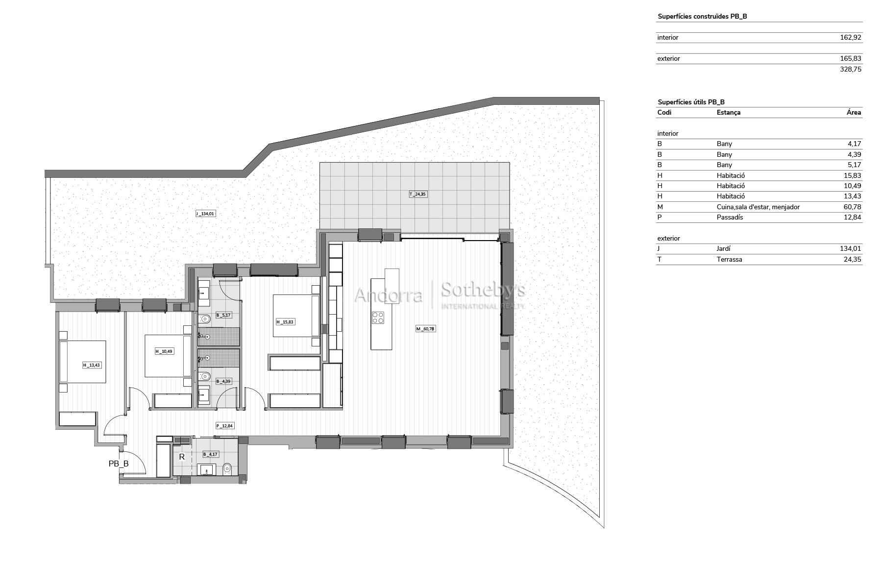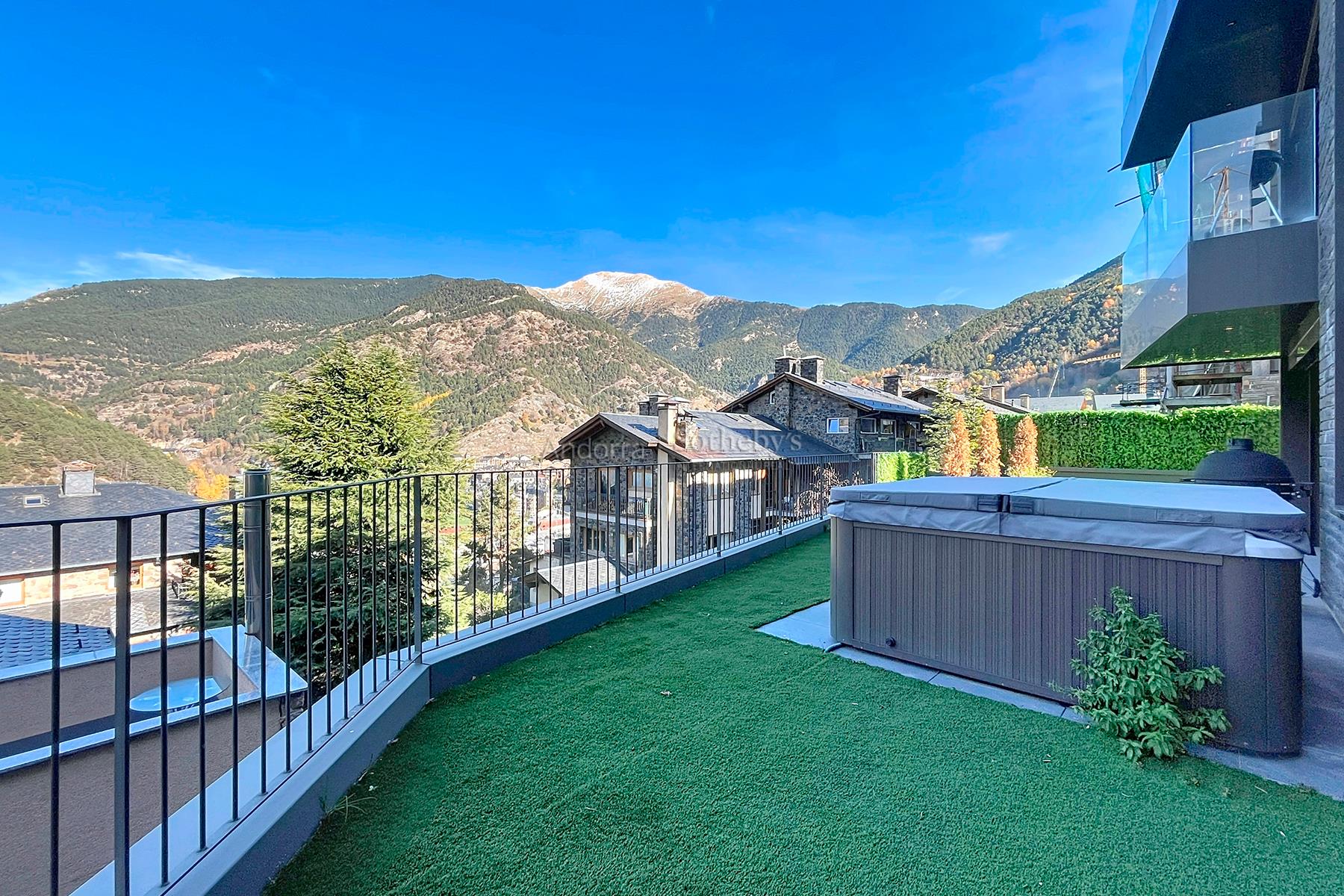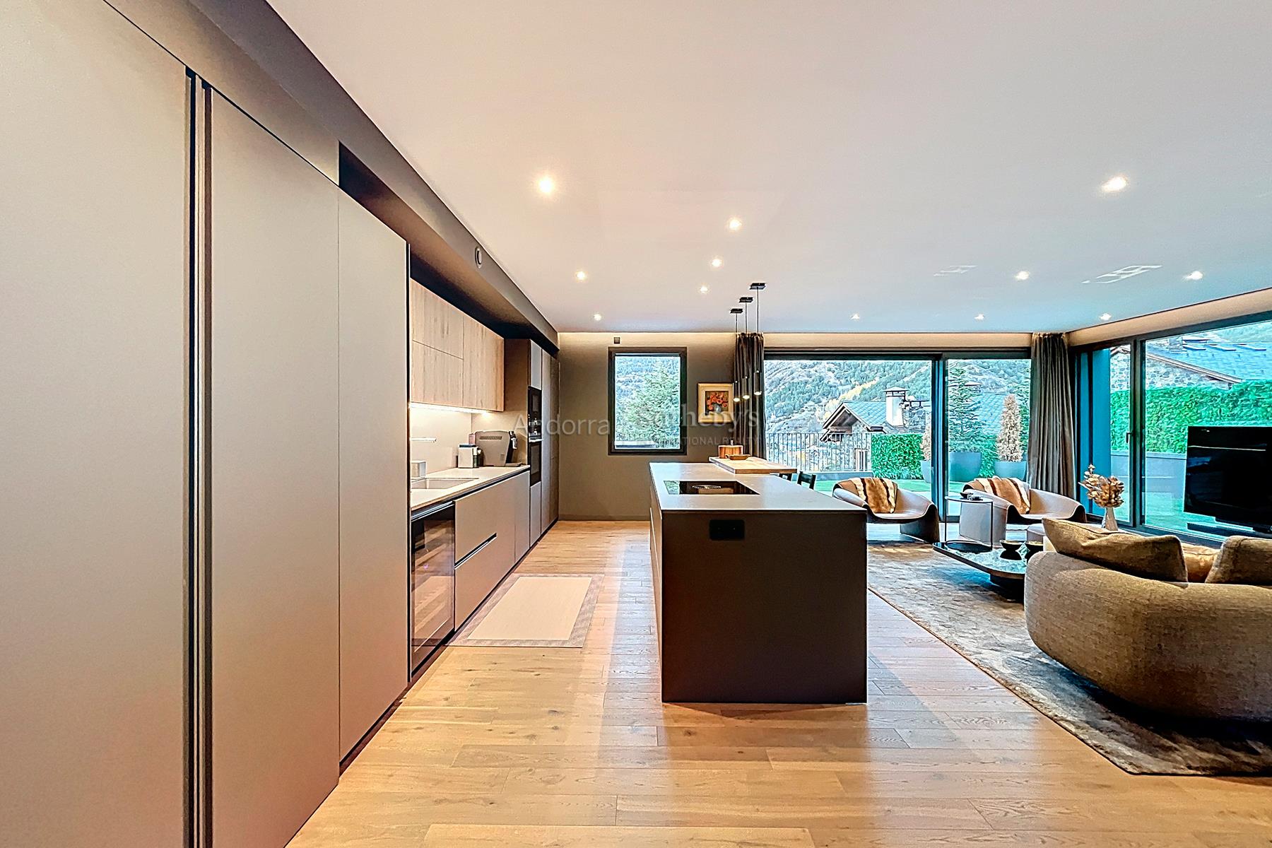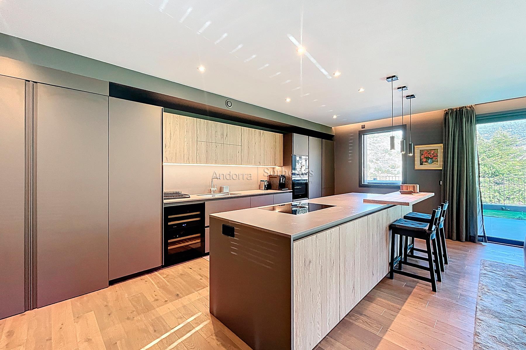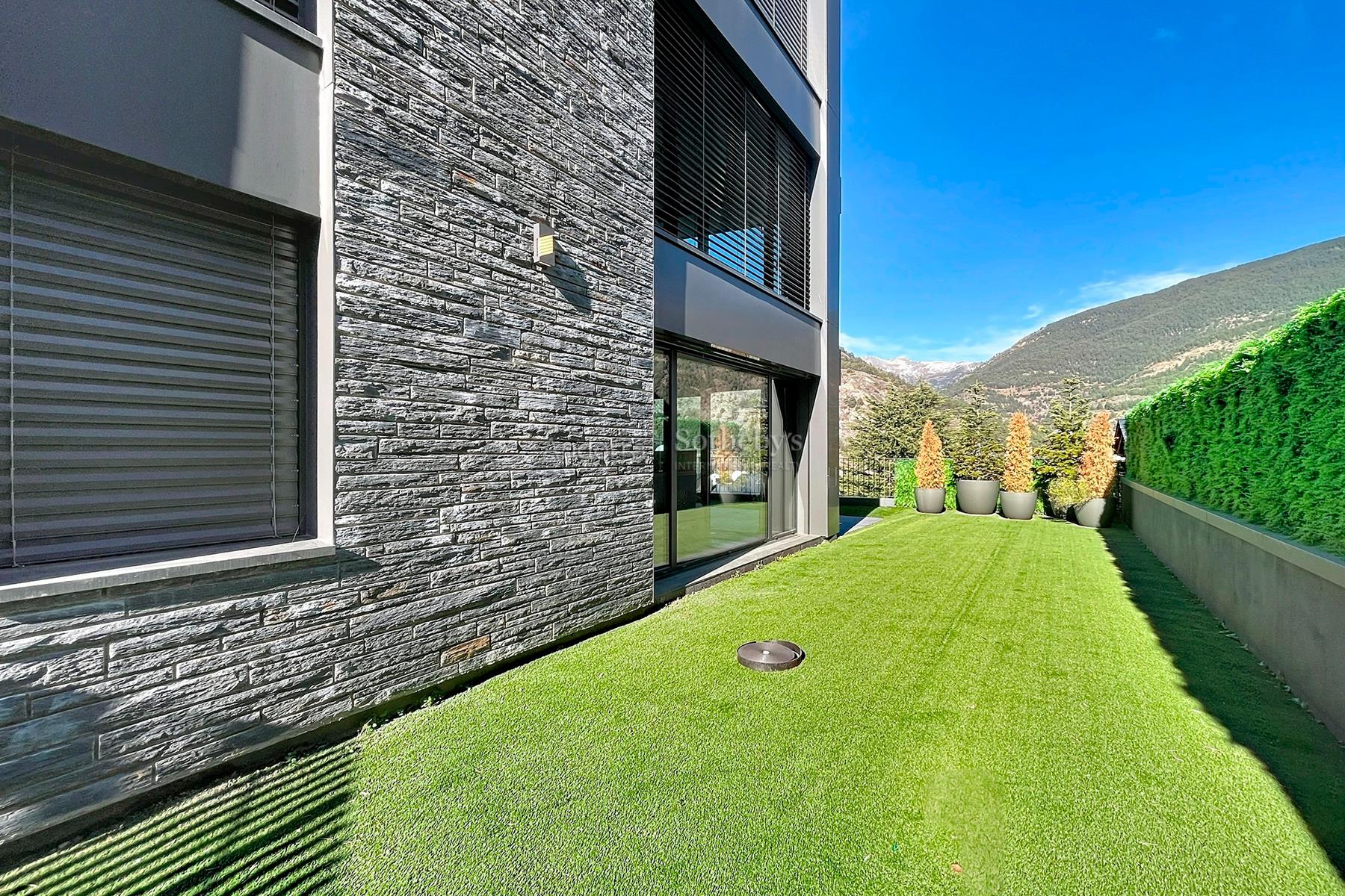 Situada a tan solo cinco minutos a pie del centro de Ordino y cerca de las escuelas, esta elegante y espaciosa planta baja de 328 m² ofrece un estilo de vida exclusivo en un entorno de ensueño. Consta de 162,92 m² de superficie interior de diseño moderno y funcional, y 165,83 m² de espacio exterior que incluye una terraza de 24,35 m² y un jardín de 134,01 m². La zona de día, amplia y luminosa, combina sala, comedor y cocina en un solo espacio con salida directa al exterior, facilitando un estilo de vida abierto y conectado con la naturaleza. Dispone de tres habitaciones, incluyendo una suite con vestidor, así como dos baños completos de diseño contemporáneo y un aseo de cortesía con lavadero integrado. La garaje de 49,03 m² permite alojar tres o cuatro vehículos y ofrece espacio de almacenamiento. Los materiales de primera calidad, la construcción cuidada y unas vistas espectaculares a las montañas de la Vall d’Ordino confieren a esta propiedad un carácter único y exclusivo. El jardín, equipado con un jacuzzi relajante, es el espacio perfecto para disfrutar de momentos de tranquilidad, relax y convivencia en un entorno privado de gran belleza.Características