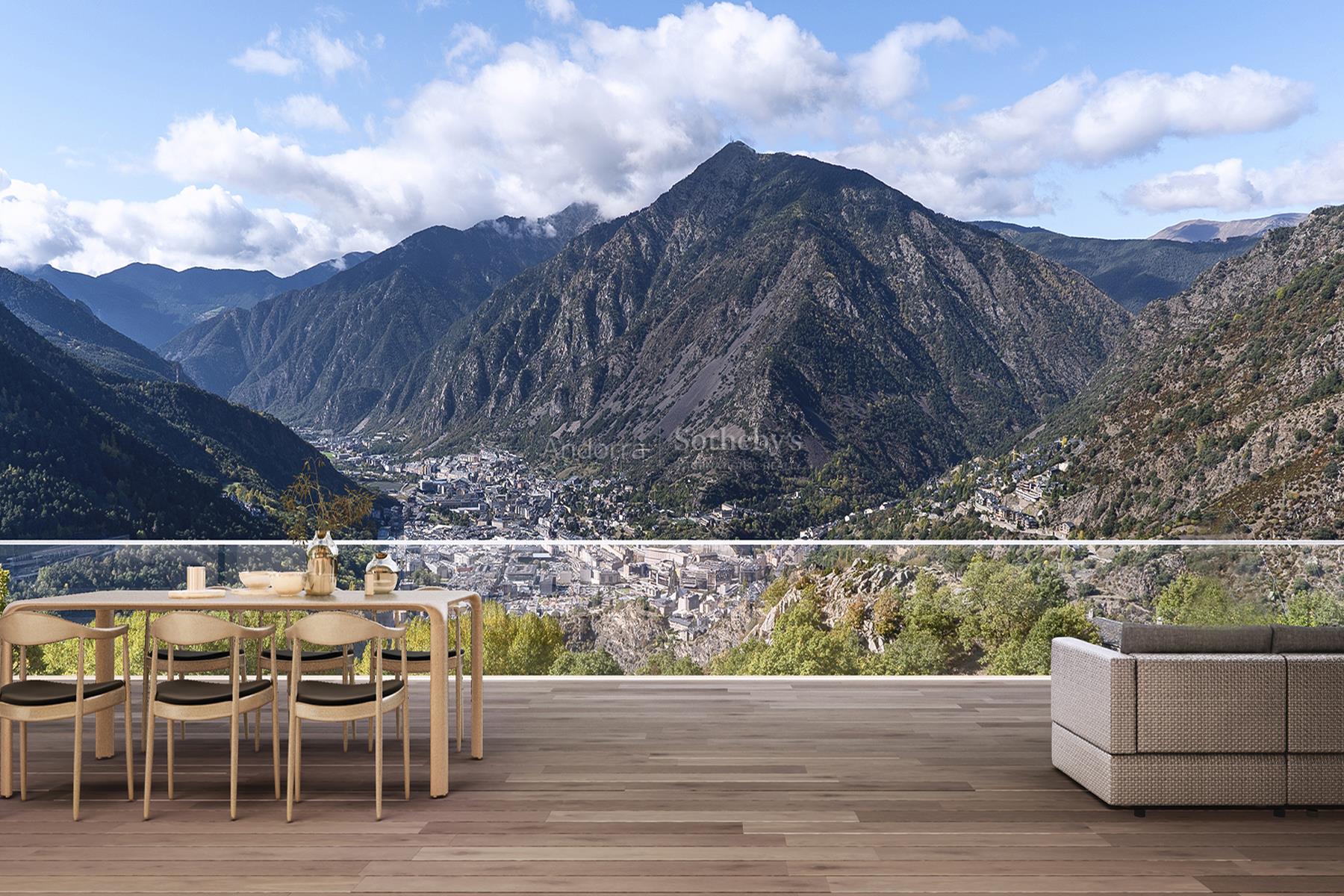 Situado en el marco natural incomparable de San Miguel de Engolasters, este exclusivo piso de 328 m², por comprar, es parte de la nueva promoción, ESCALA, diseñada por el prestigioso estudio de arquitectura Rafael de la-Hoz. Este singular edificio se integra perfectamente en su entorno de montaña y gracias a su concepción abierta al exterior más su ubicación en un mirador natural excepcional, le permite incorporar a su espacio interior, mucha luz natural y las impresionantes vistas sobre Andorra la Vella y Escaldes- Engordany. Su privilegiada situación le permite, además, estar a pocos minutos de centro comercial, financiero y administrativo de Andorra, con toda su variada oferta comercial, de ocio y de servicios, así como de todos los equipamientos lúdicos y deportivos, entre otras, las estaciones de esquí y deportes de montaña del Principado: GrandValira, Vallnord Pal-Arinsal, Ordino Arcalís y Naturlandia. La propiedad cuenta con 193 m2 de superficie habitable, totalmente exterior. Todas las estancias disponen de una salida a la terraza de 110 m² desde donde podrá disfrutar todos los días del año, con la familia y los amigos, de una puesta de sol única y diferente, así como de las increíbles vistas panorámicas sobre el valle central del Principado de Andorra y los majestuosos picos que le rodean. La parte de descanso se divide en una master suite con un área de vestuario incorporada y baño completo, más dos suites con sus propios baños completos. La parte de día se compone de un fantástico espacio abierto formado por la cocina, totalmente equipada con electrodomésticos de alta gama y una lavandería anexa, un salón-comedor y un espacio destinado a una biblioteca o zona chill-out. Para su total comodidad, el piso dispone en el mismo edificio de 3 plazas de garaje y 1 trastero. Y por una relajación perfecta a finales del día, podrá disfrutar de un exclusivo Spa privado, situado en el mismo edificio, con las inspiradoras vistas sobre los valles de Andorra. Este lujoso ático, de un diseño moderno y elegante, está concebido especialmente para satisfacer todos sus deseos de confort, tranquilidad y privacidad, que sólo podrá encontrar en ESCALA, en el corazón de una de las mejores zonas residenciales del Principado de Andorra.Características