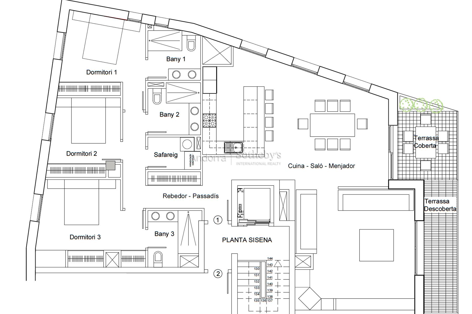 Ce magnifique penthouse est situé dans un nouveau complexe résidentiel en construction à Escaldes-Engordany, Residencial Marió, à quelques minutes du centre commercial et financier du pays. Avec une surface de 171m2, ce penthouse moderne dispose de deux terrasses, une couverte et une non couverte d'environ 8m2 chacune, offrant un environnement lumineux et ensoleillé grâce à son orientation optimale. La propriété se compose de 3 chambres, dont 2 en suite, et 3 salles de bains complètes. Il bénéficie d'un salon-salle à manger spacieux et d'une cuisine ouverte, le tout relié aux deux terrasses, créant un espace parfait pour le divertissement. De plus, il dispose d'un espace buanderie pratique. Les caractéristiques marquantes comprennent des finitions haut de gamme, un chauffage par aérothermie et une pompe à chaleur, des volets en aluminium motorisés, un éclairage LED, un chauffage au sol, entre autres. De plus, des places de parking et des espaces de stockage sont disponibles selon vos besoins, et ne sont pas inclus dans le prix de la propriété. La livraison de cette propriété est prévue pour avril 2025, vous offrant ainsi la possibilité de sécuriser votre domicile dans ce complexe résidentiel exclusif.Caractéristiques